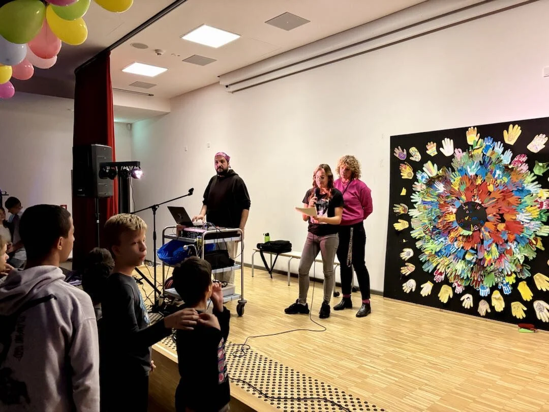 Die ganze Schule feierte zusammen in der Disko. Die Farbe ROSA (Farbe des Weltmädchentages) wurde von Mädchen, Jungs, Frauen und Männern getragen. Die von unseren Mädchen (DJane) abgespielte Musik waren nur Hits, die von Frauen gesungen wurden.